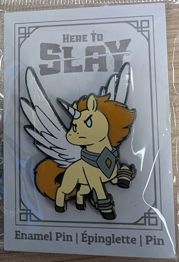 Enhance your cap, backpack, lanyard, or playmat with The Here To Slay The Protecting Horn Enamel Pin