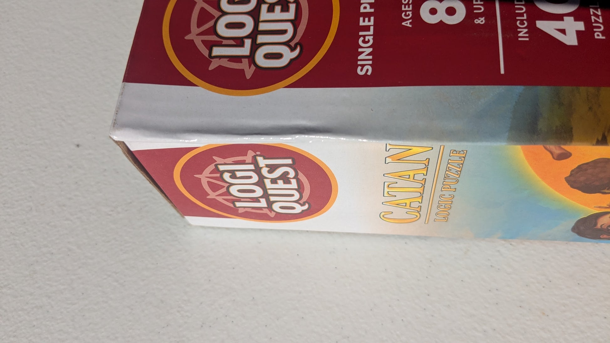 The CATAN Logic Puzzle is a solo-player puzzle for ages 8 and up. It includes one storage case with built-in playing board, 40 puzzle cards, 33 resource pieces, and instructions. The puzzle is expected to be released in October this year.